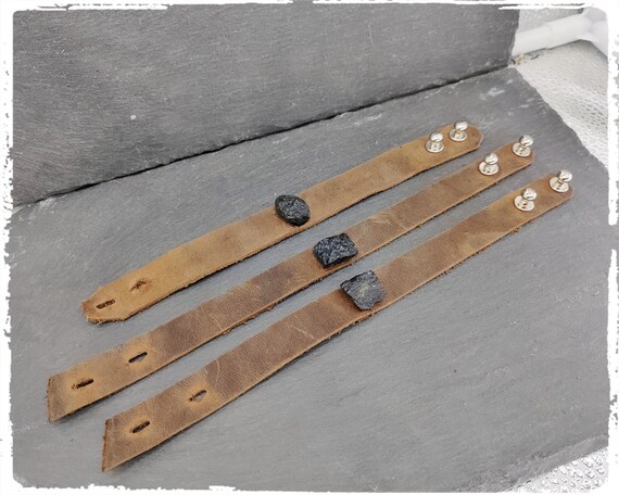 Leather Tektite Bracelet Cuff Gemstone Bracelet Crystal Etsy
